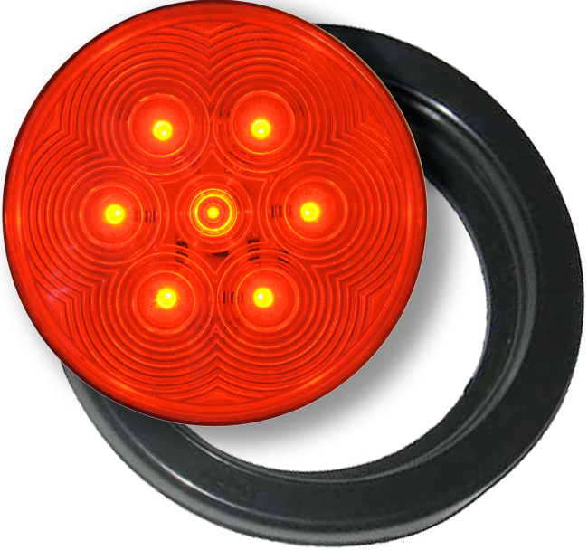 4″ Round Stop/Tail/Turn or Turn Signal Lamp. 7 Diode Dual Function Configuration. Universal fit uses industry standard grommet and plug. Skirted Double Weld is sealed by both sonic welding and epoxy sealant. Skirted lens over base design is durable, attractive and extremely water resistant.