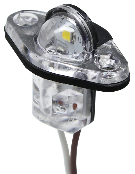 Sealed license light. Black body with clear light. 1-5/8”” L, 1” H, 1-3/8” D (Requires 2 lights to meet DOT standards)