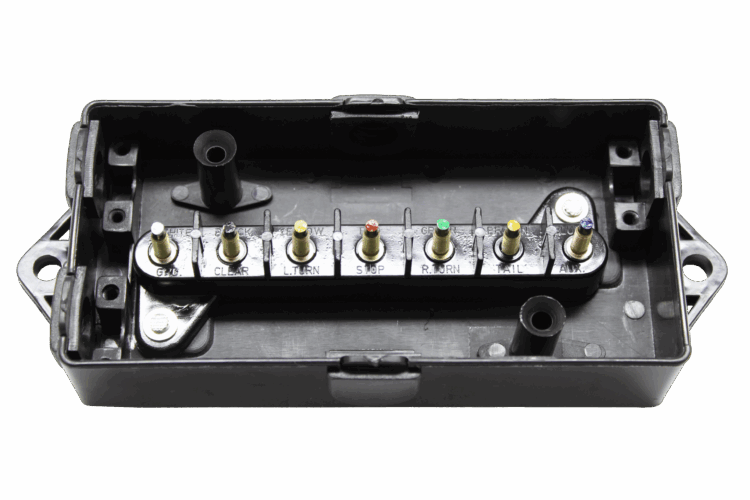 7-Pole Junction Box with Hardware. Keep your trailer wiring neat and clean with Jammy 7-Way weatherproof junction box. Features: